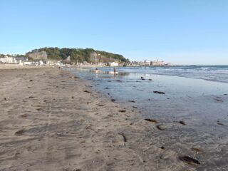 鎌倉駅で電車を降り、新宿と変わらんくらい混んでいる若宮大路を歩いて由比ヶ浜へ。海岸まで出るとさすがに人口密度が低くなり、た...