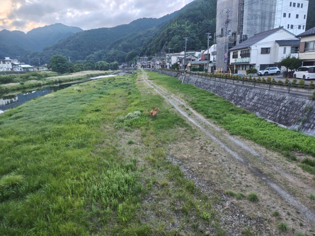 薄暗くなってから1人外を散歩した。河原の道を何か動物が走っている。