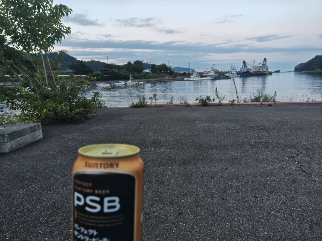 小さな漁港で適当なコンクリートに腰掛け、しみじみとビールを飲んだ。男子高校生くらいのグループが騒いでいた。青春か。