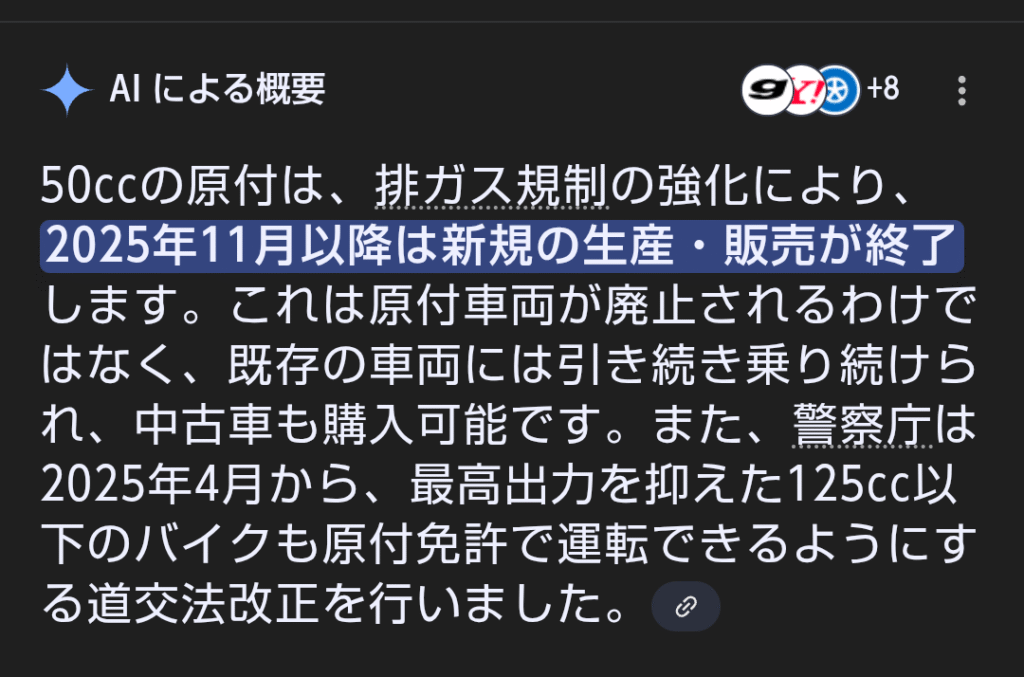 まあ生産しなくなるだけで今あるものは乗られ続けるから、町中で見かけなくなるのはまだまだ先だろう。郵便局の電動バイクみたいなものが増えてくれると助かる。