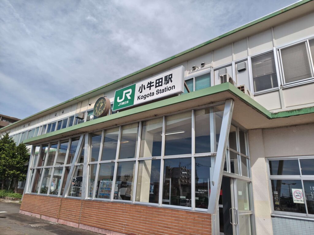 東北本線で小牛田(こごた)へ。そこから陸羽東線への乗り換えに少し時間があったので駅前を散策するも何も無し。