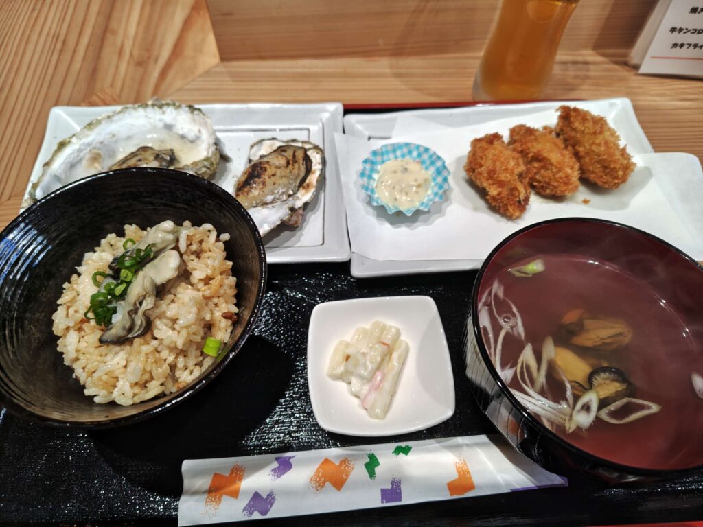 小ぶりではあるものの牡蠣づくしの定食に満足した。