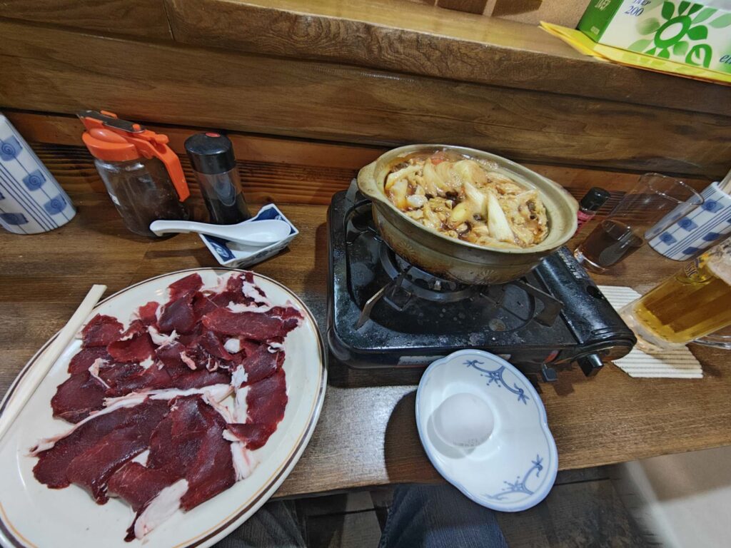 えぞ鹿すき焼と本まぐろ、ビールを2杯頼んだ。
