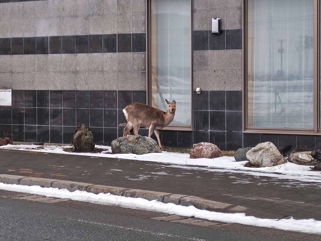 市街を散策するも営業中の飲食店などは何もなかった。唯一の収穫は街中で鹿と遭遇したこと。