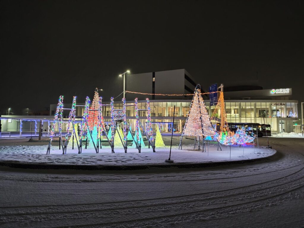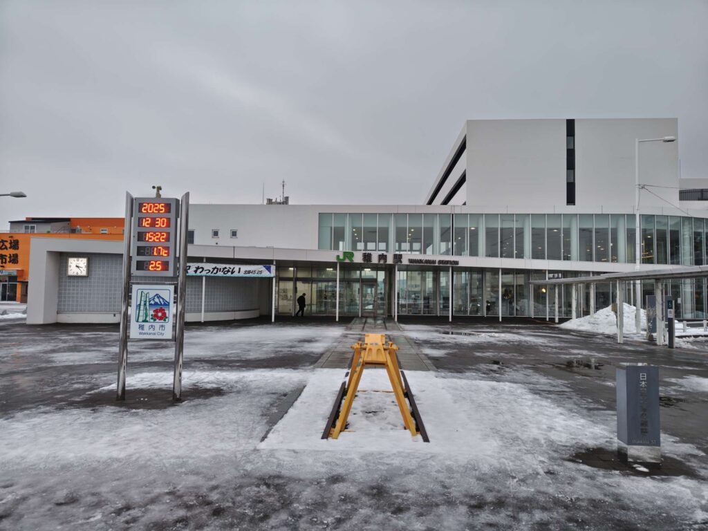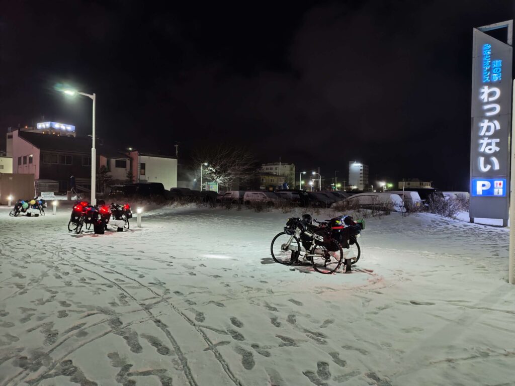 映画が終わり外に出ると、一気に気温が下がって雪が降り出していた。駅の待合室を通ると若者の集団が屯っていた。安全チョッキと赤色灯を装備して完全に警備員スタイル。どうやら真夜中なのに自転車でこれから宗谷岬に向かうようだ。