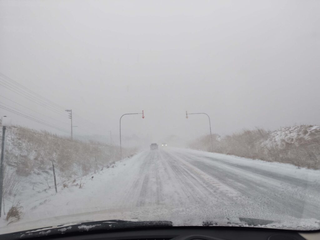 道北エリアではかなり吹雪かれた。時折視界が真っ白になることもありルートを見失いかける。しかし車列の皆がハザードを点灯させて走ることで吹雪の中でも位置と距離感をつかむことができた。試される大地では助け合いの精神が大事なのだろう。