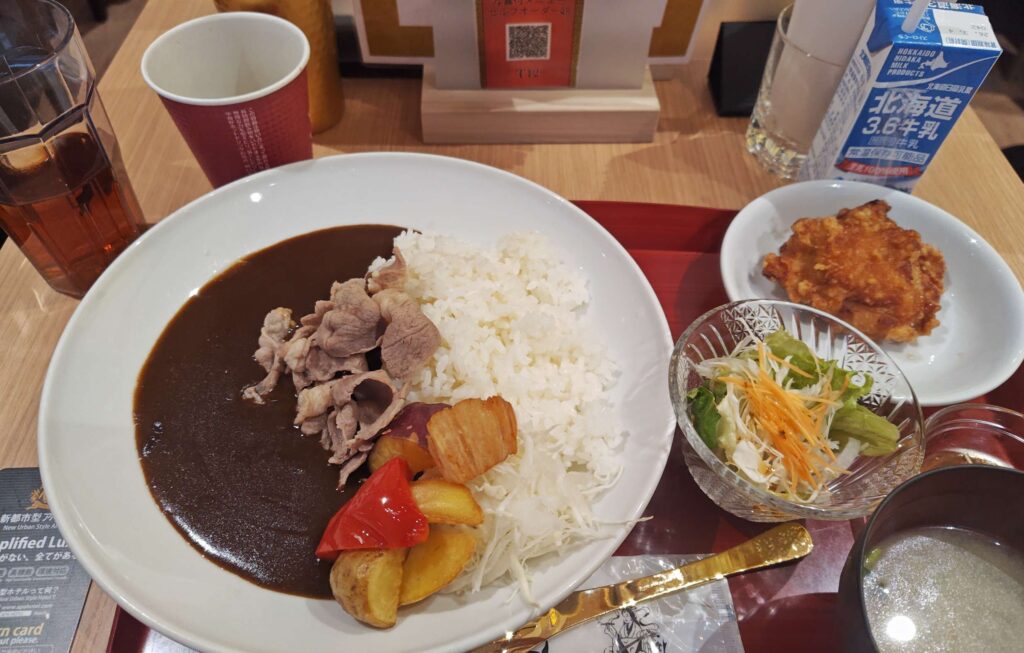 朝食はアパ社長カレーセット、できるのに時間掛かったけどまさかルーから手作りなのだろうか。