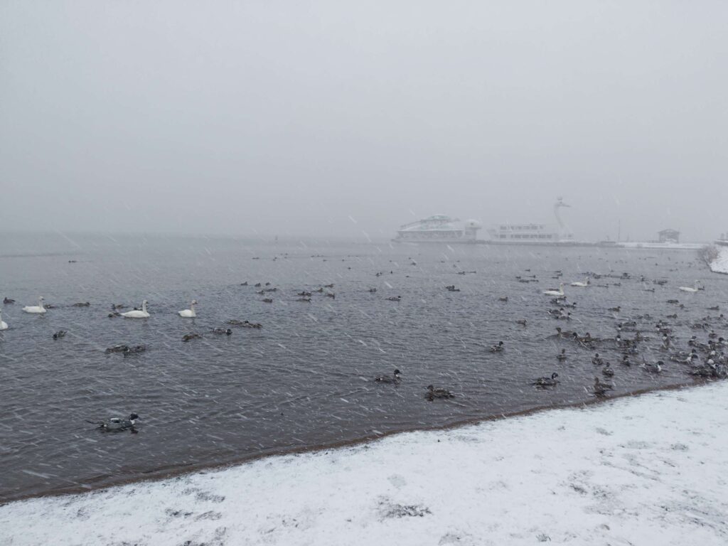 水族館を出て、猪苗代湖畔へ。観光バスが何台も止まり、中国人観光客が大量に降りてはしゃいでいる。それ以上にたくさんの鴨がエサを求めて集まっていた。