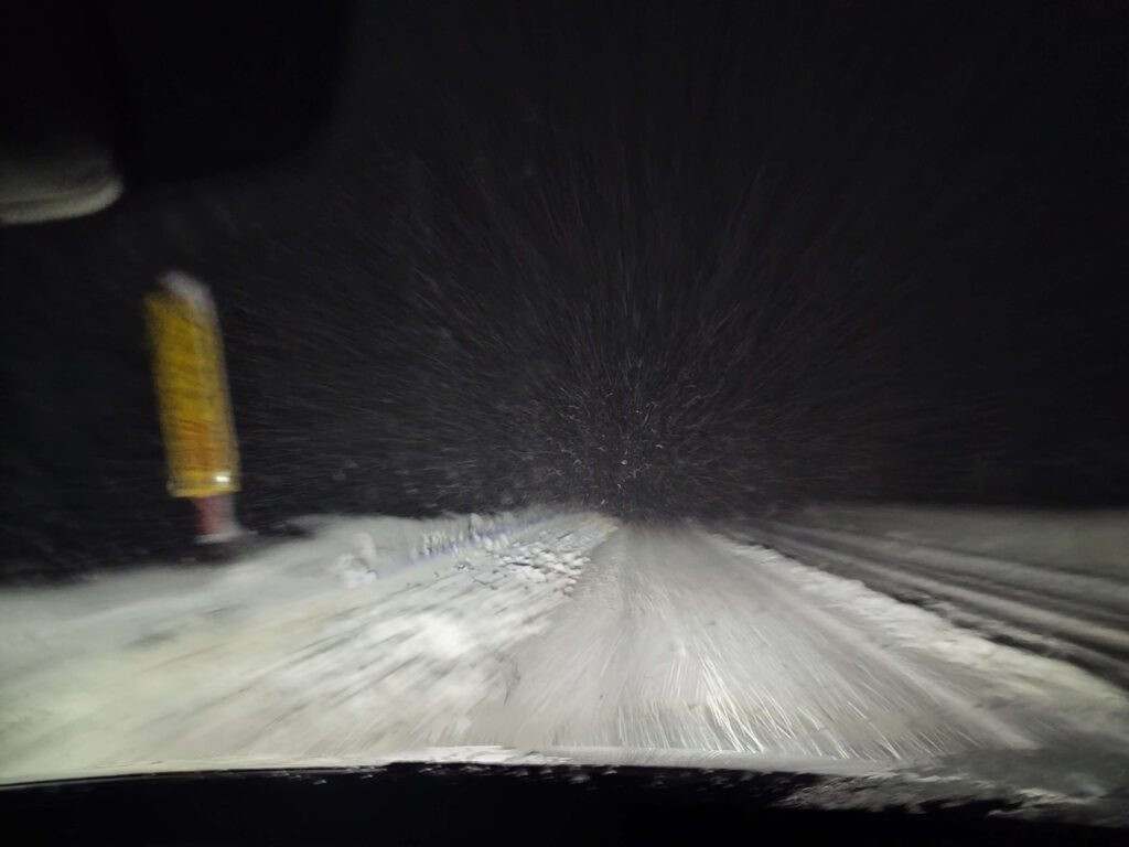 福島県と山形県の県境付近を通る頃、雪が強くなってきた。