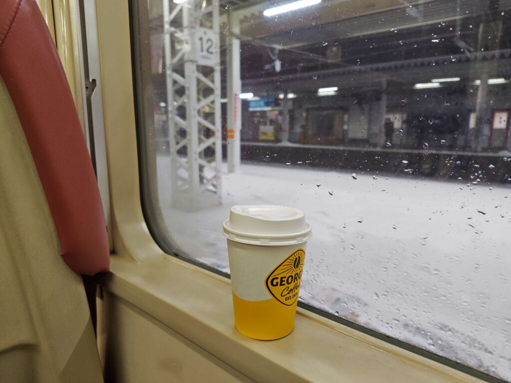 翌朝、宿をチェックアウトして帰りの新幹線まで1時間ほど時間があったので、駅の中で時間をつぶす。靴に染みるのでもう外には出たくない。