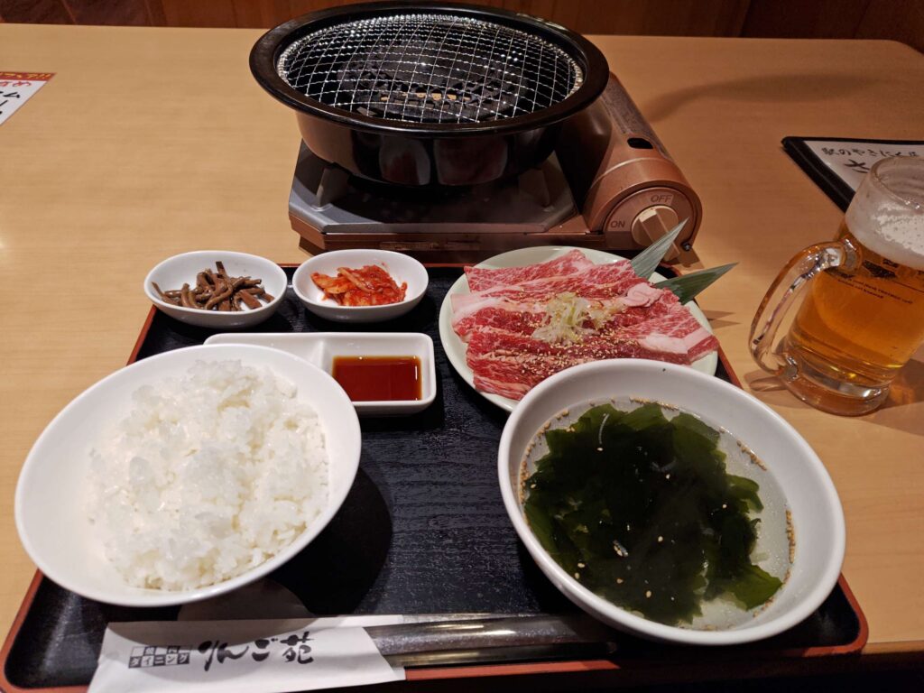 ホテルの食堂で夕食を食べようとしたが、焼肉屋だった。もう外に出るのもダルいので1人焼き肉。