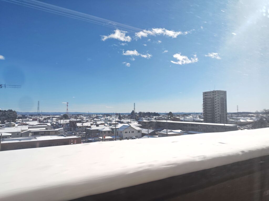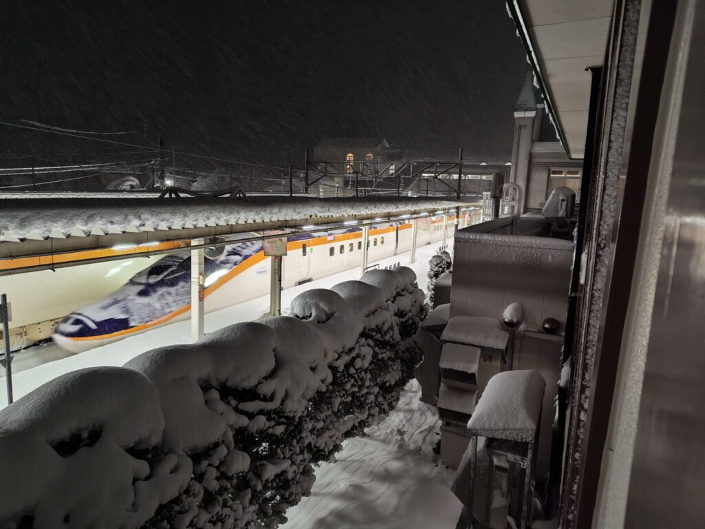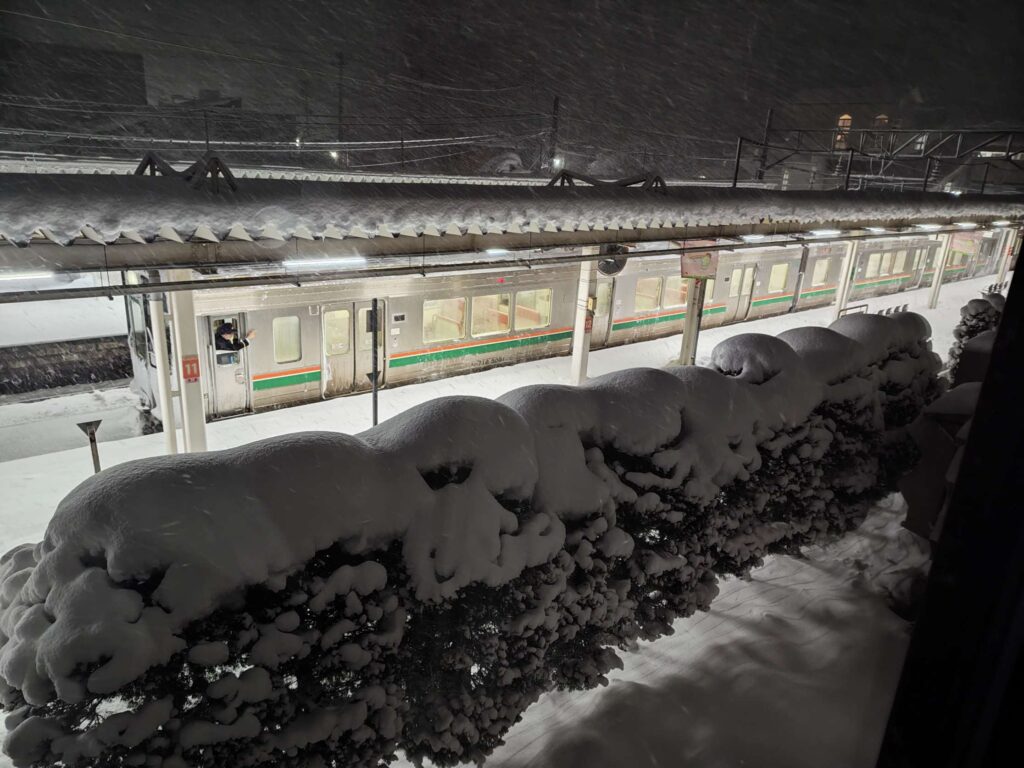 大雪のため、同じ区間を走る在来線のほうは運休になっていたけれど、山形新幹線はなんとか大丈夫だった。翌日仕事なので帰れなかったら困る(自業自得だけど)。