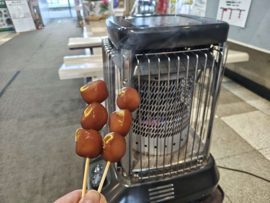じっとしていると寒い。コンニャクを食いながらストーブで温まる。