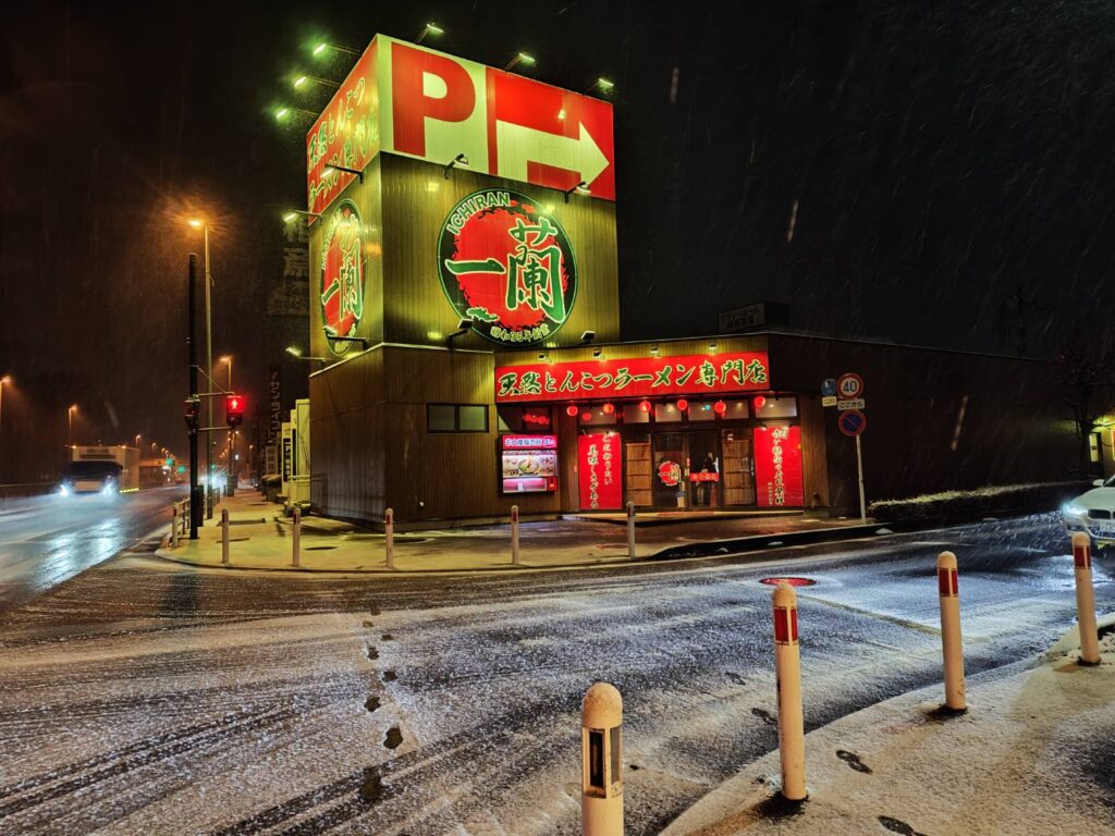 一蘭でラーメン、いつ行っても駐車場に車が停まっている。ガラガラな一蘭は見たことがない。