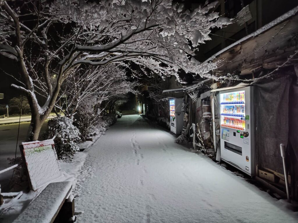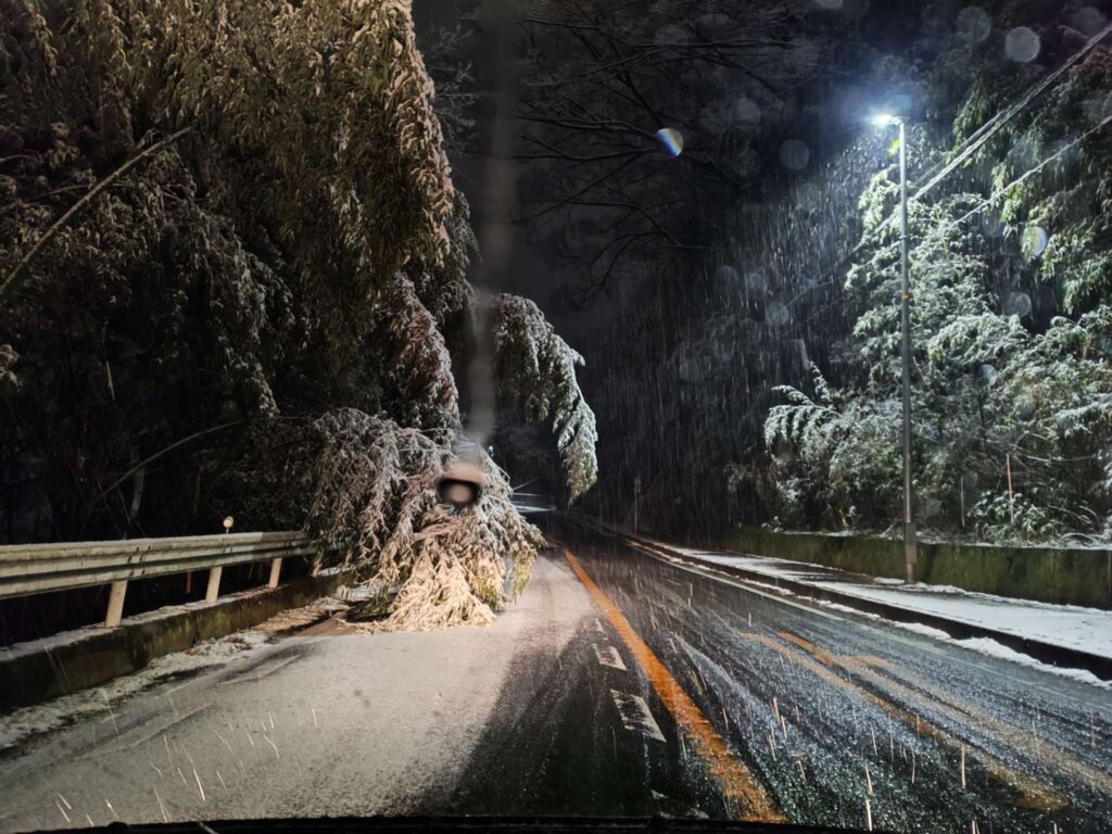 普段積雪の無い地域なので、たまに雪が降ると竹の木などが雪の重みで垂れ下がってくる。そこらじゅうで道路を支障していた。