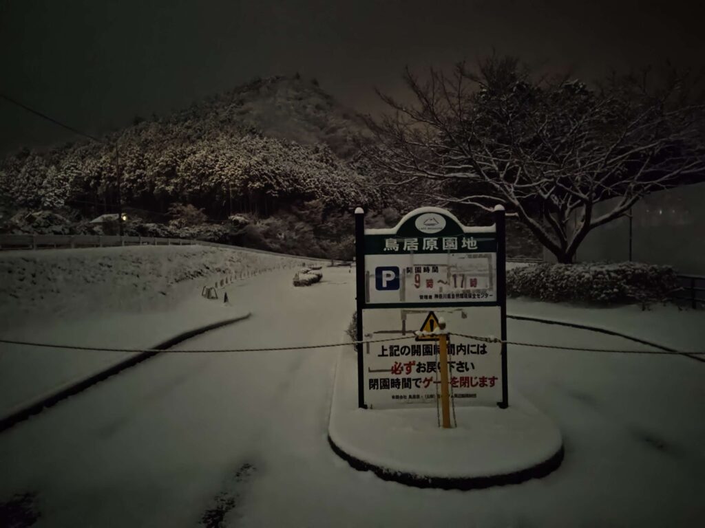 鳥居原園地の駐車場は当然夜間閉鎖中