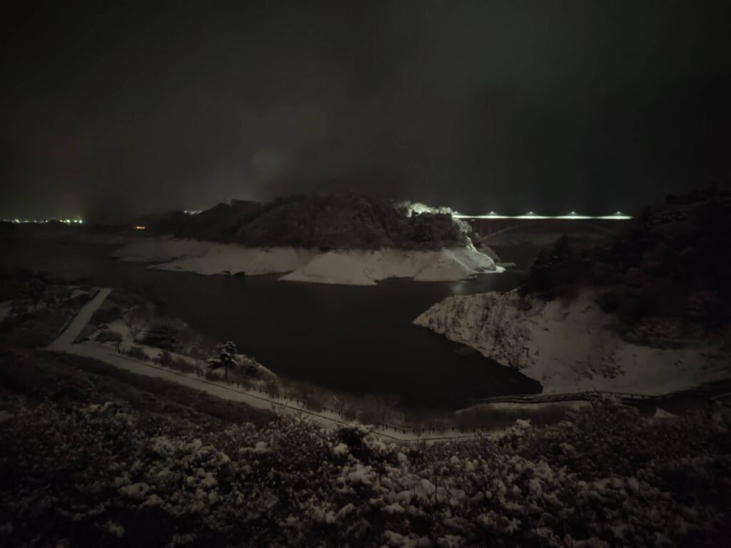 真っ暗な宮ヶ瀬湖。その昔大学生の頃、友人と湖面の近くまで行ったら懐中電灯を持った人影が近づいて来たので走って逃げた。今思えばダムの管理人なんだろうけど、逆の立場だったらほんと嫌だろうな。よくわらんヤンキーだったら逆ギレされて殺害されるかもしれんし。
