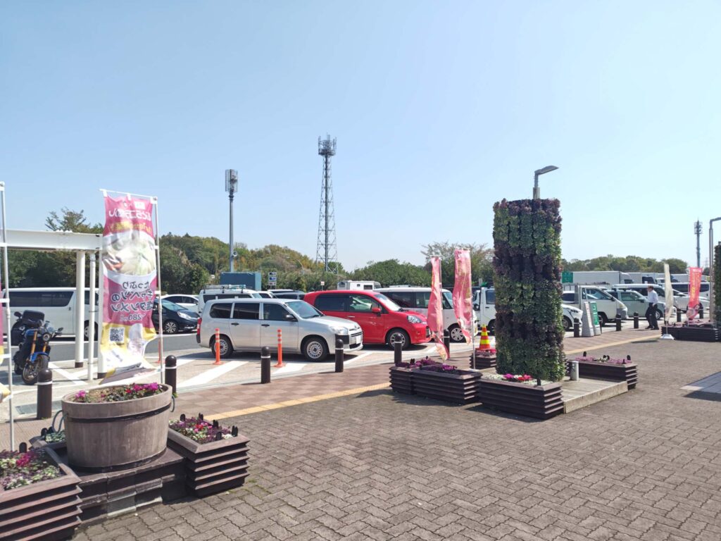 途中、パーキングエリアで時間調整。休日のパーキングエリアは仕事でせかせかしている人が居なくて良い。道行く人もみんなOFF感が溢れている。天気も良くてぽかぽか陽気、というかもう暑い。今季初冷房を入れた。